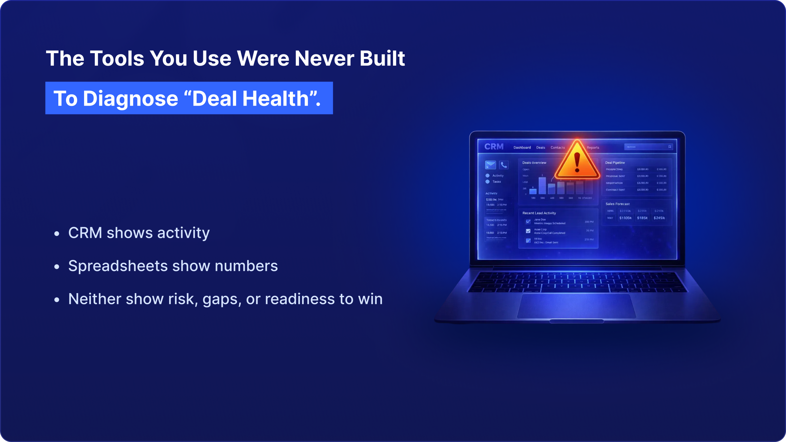 Deal Health-AI is the first pipeline review workspace built on deal intelligence, not activity or CRM fields.